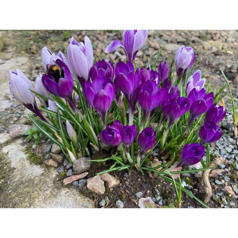 Purple crocuses with bee - 420 - Follow the bee on its journey through the spring flowers